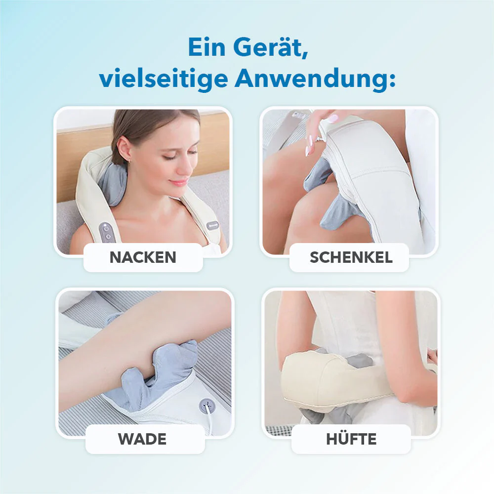 Grâce à son design sans fil, cet appareil de massage offre une flexibilité optimale. Que ce soit sur le canapé, au bureau ou en déplacement — le Shiatsu MassagePro est toujours prêt à l’emploi. L’utilisation intuitive vous assure une prise en main simple, tandis que la forme ergonomique s’adapte parfaitement à la nuque, aux épaules et au dos. Profitez ainsi de moments de détente où et quand vous le souhaitez, sans rendez-vous coûteux en institut.