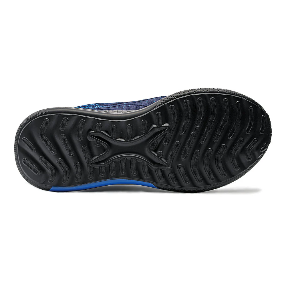 Tissage Tech « Digital » : La tige est réalisée dans une maille haute densité mêlant fils bleus et noirs pour un rendu visuel texturé unique. Ce matériau est souple, respirant et très résistant.