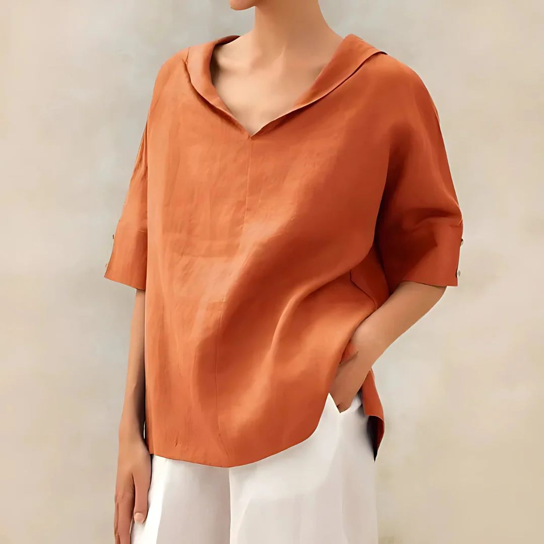Confectionnée en lin de haute qualité, cette blouse procure une sensation douce et aérienne sur la peau. Sa coupe ample garantit une liberté de mouvement optimale, tandis que les manches légèrement tombantes ajoutent une touche décontractée et féminine. Adaptée aussi bien aux matinées fraîches qu’aux journées ensoleillées, elle se porte parfaitement avec une veste légère ou un accessoire coloré.