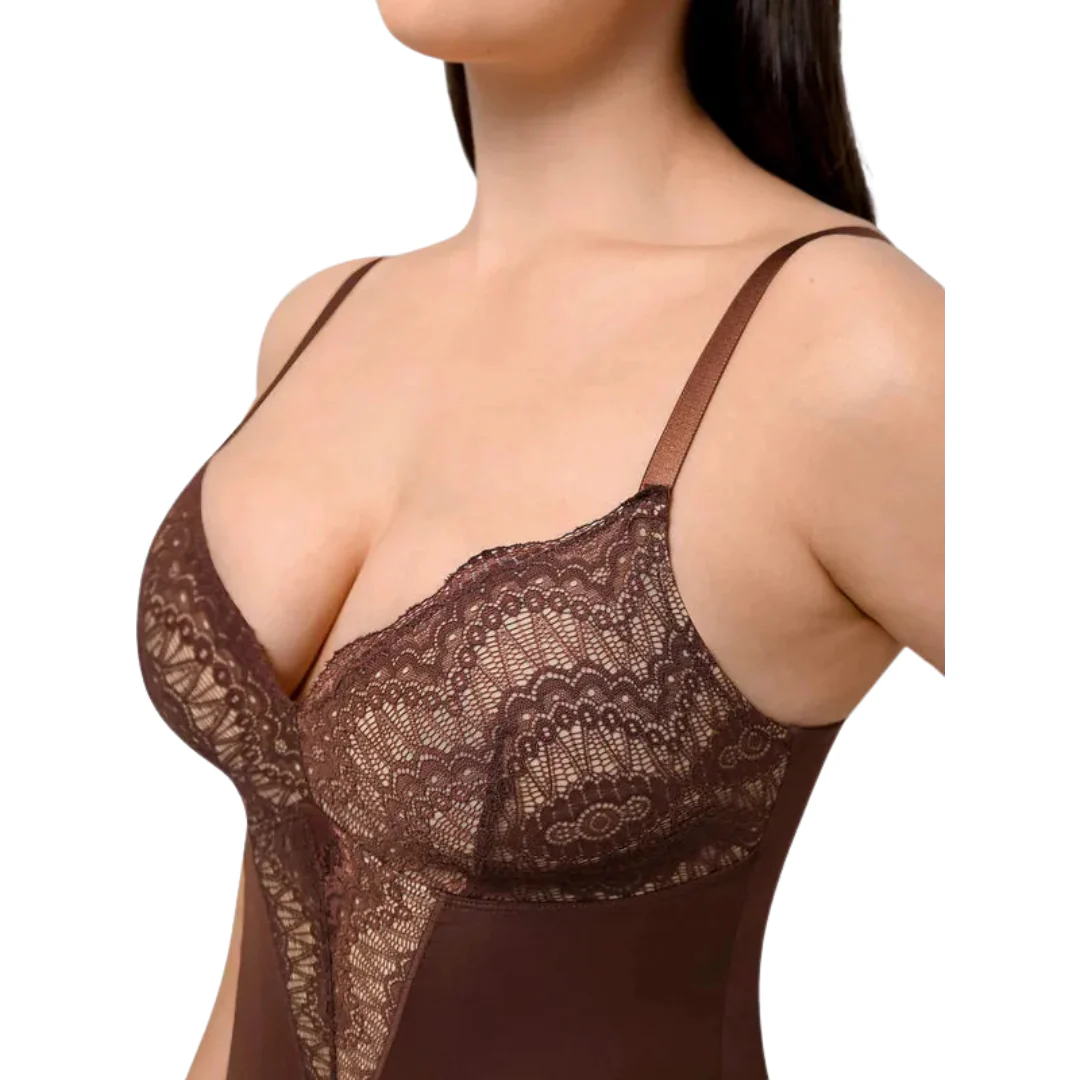 Ce body gainant offre un maintien optimal tout en sublimant votre silhouette. Grâce à sa structure sculptante intégrée, il affine la taille, lisse le ventre et soutient naturellement la poitrine. La dentelle douce et extensible épouse les formes sans comprimer, pour un rendu élégant et naturel. Parfait sous une robe, une chemise ou porté seul, il rehausse la silhouette avec délicatesse.