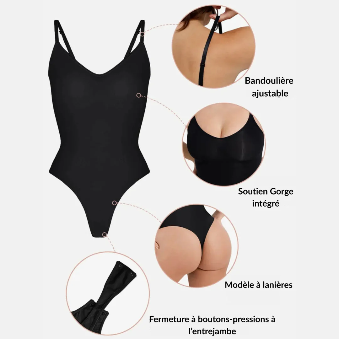 Grâce à sa conception sans couture et à sa texture lisse, ce body reste totalement discret sous vos tenues. Il rehausse la poitrine naturellement et offre un effet ventre plat immédiat, sans démarcation ni gêne.