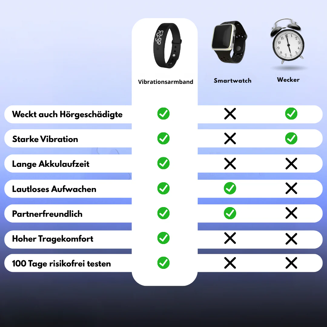 Ce bracelet réveil vibrant propose une alternative efficace aux alarmes sonores traditionnelles. Grâce à ses vibrations progressives, le réveil se fait en douceur, sans bruit ni stress. Le bracelet se porte confortablement au poignet durant la nuit et permet un réveil ciblé, sans déranger l’entourage. Son écran digital lisible facilite la consultation de l’heure, même au lever du jour.