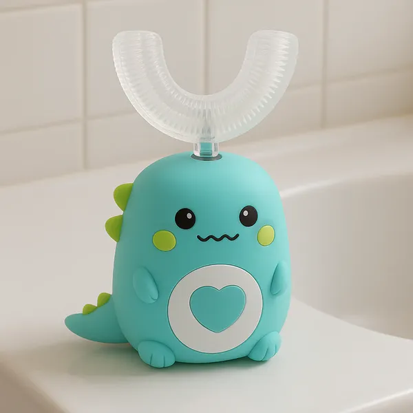 Cette brosse à dents 360° a été spécialement développée pour rendre le brossage ludique et efficace. Grâce à sa forme ergonomique en U, elle épouse parfaitement la dentition des enfants et nettoie toutes les surfaces en même temps. Les enfants adoptent ainsi plus facilement une routine d’hygiène bucco-dentaire sans contrainte ni effort.