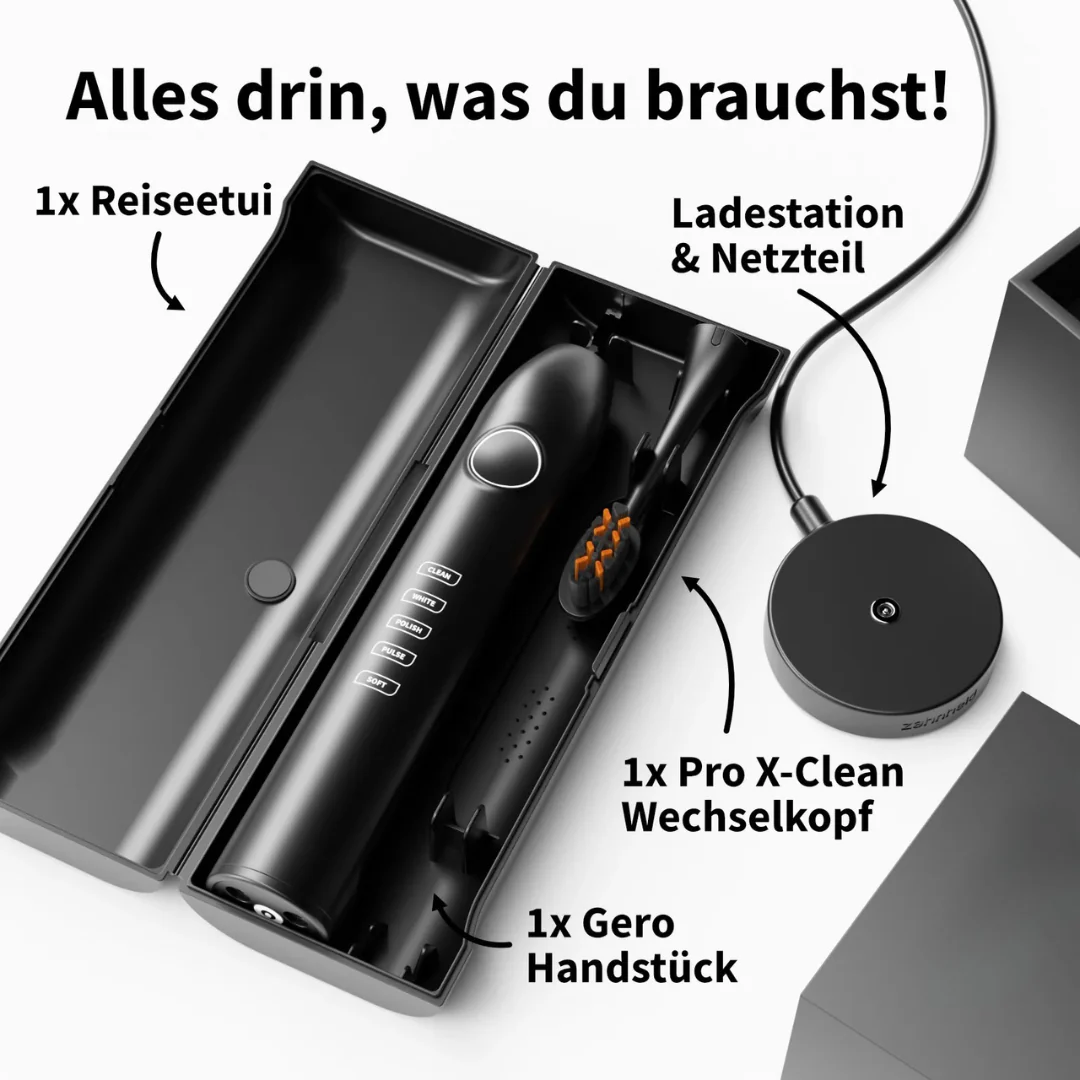 Ce set innovant combine une brosse à dents sonique puissante avec un hydropulseur moderne. Les vibrations précises éliminent soigneusement la plaque dentaire, tandis que le jet d’eau déloge en douceur les résidus alimentaires entre les dents. Votre bouche reste ainsi visiblement plus fraîche et propre – sans fil dentaire.