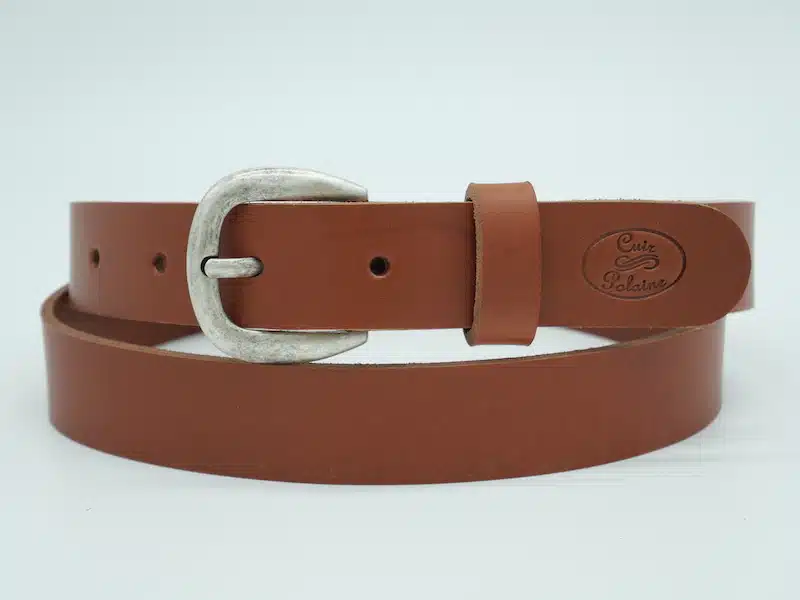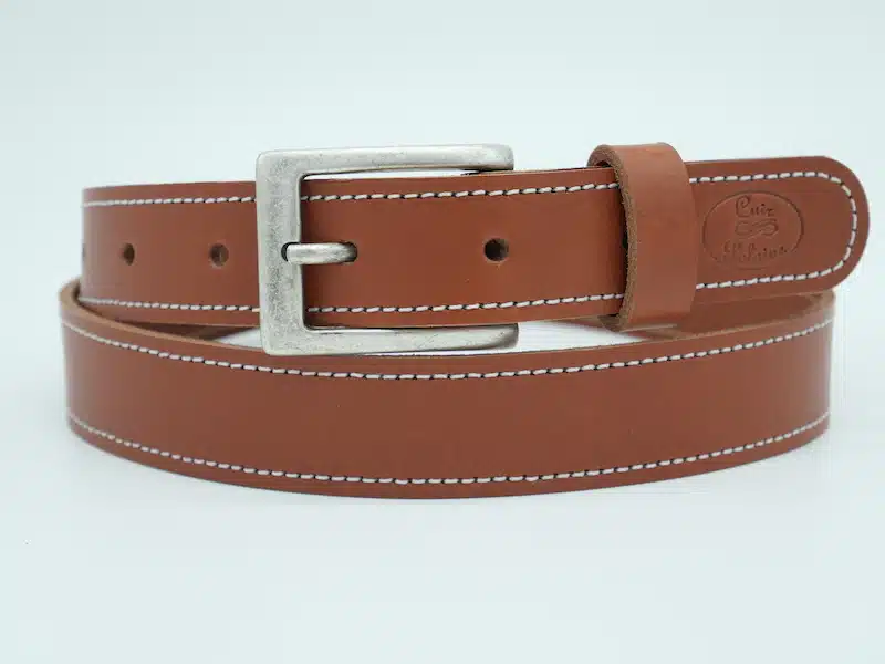 - Chaque lanière de ceinture est réalisée dans la partie la plus noble et la plus résistante de la peau, appelée “le cuir pleine fleur“.