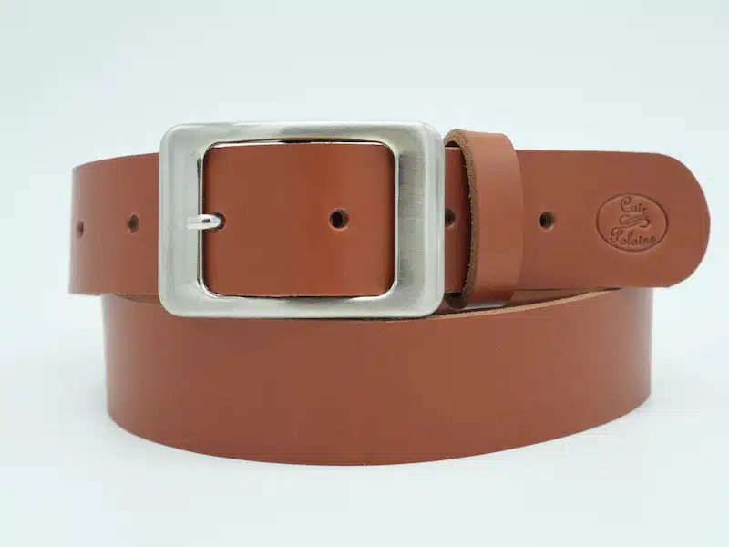 - Chaque lanière de ceinture est réalisée dans la partie la plus noble et la plus résistante de la peau, appelée “le cuir pleine fleur“.