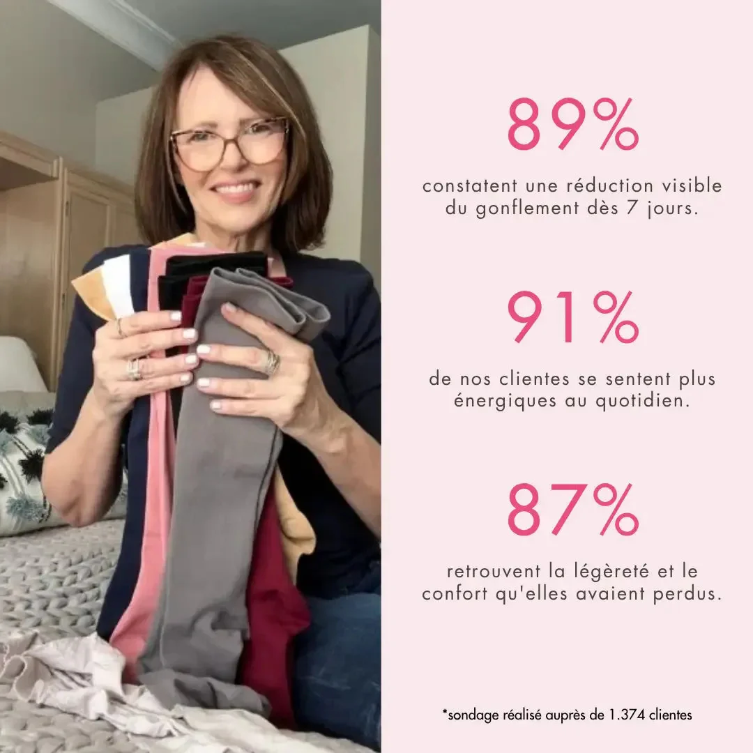 En quelques jours, elles aident à réduire le gonflement des chevilles et des mollets tout en offrant un confort musculaire réel. Leur compression graduée favorise un retour veineux naturel pour des jambes plus légères et plus toniques.