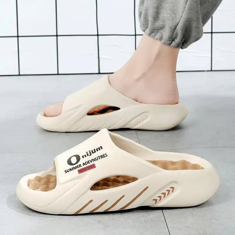 Stabilité maximale avec semelle épaisse antidérapante. Confort massant grâce aux picots sous le pied. Design aéré en style claquette pour pieds respirants.