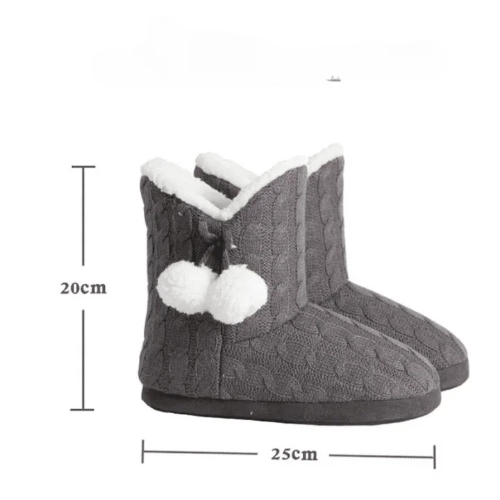 Chaussons bottes confortables avec design montant et pompon Intérieur en peluche pour un hiver chaleureux Taille unique 35-38 (25 cm de longueur de pied) et 5 couleurs disponibles