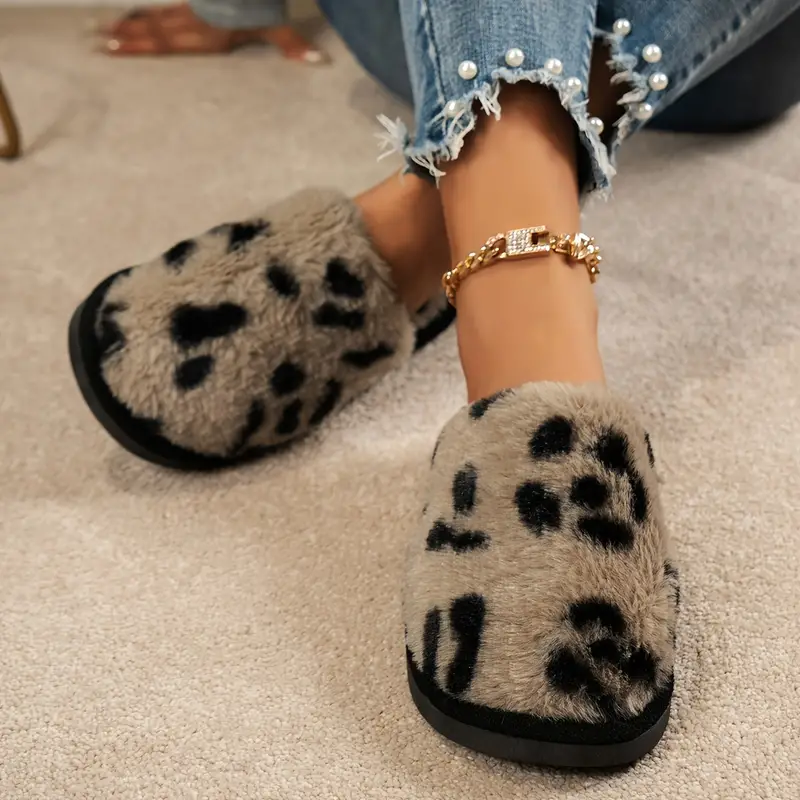 Un camouflage de léopard sur un chausson léopard en forme de mule. La combinaison parfaite pour passer des soirées avec les pieds bien au chaud. Enfilez votre pyjama préféré et glissez-vous dans ces pantoufles moumoute pour femme.