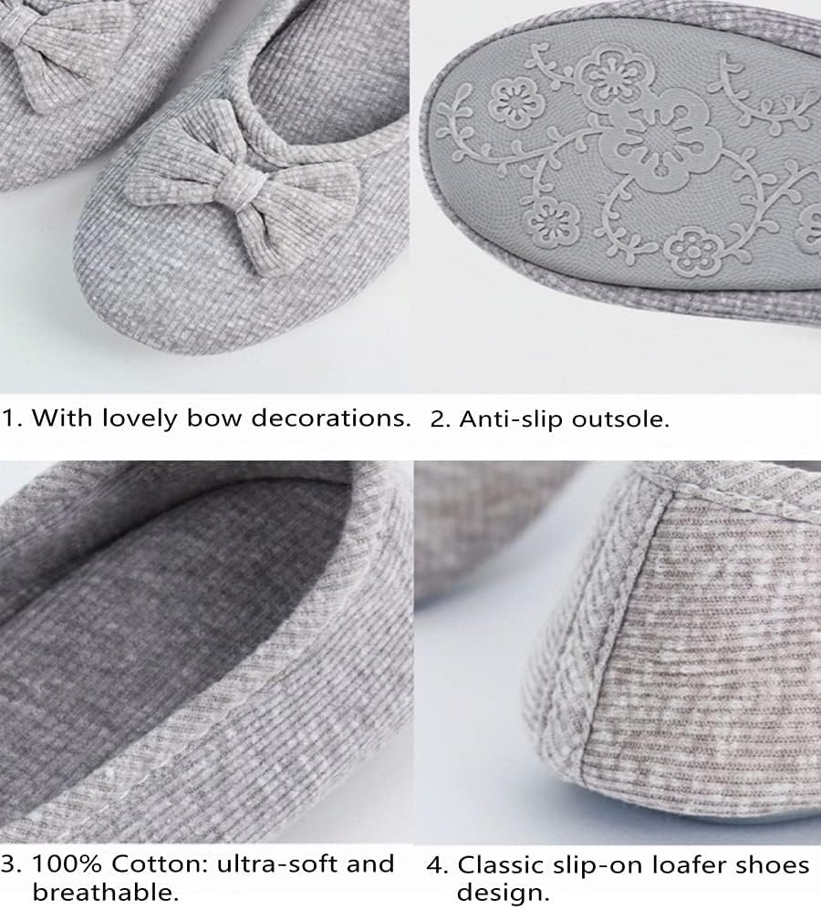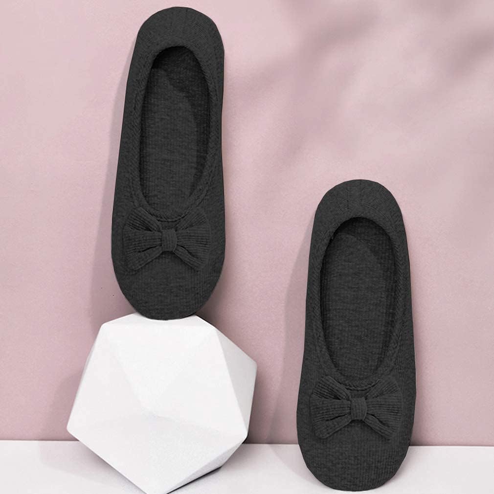 Chausson femme, Pantoufles fermées, en coton, ballerines pour femme, gris foncé, passe-partout