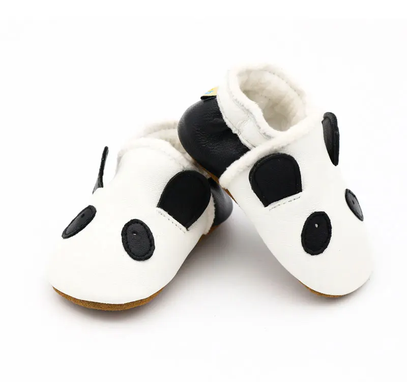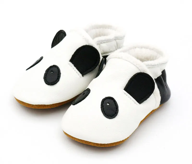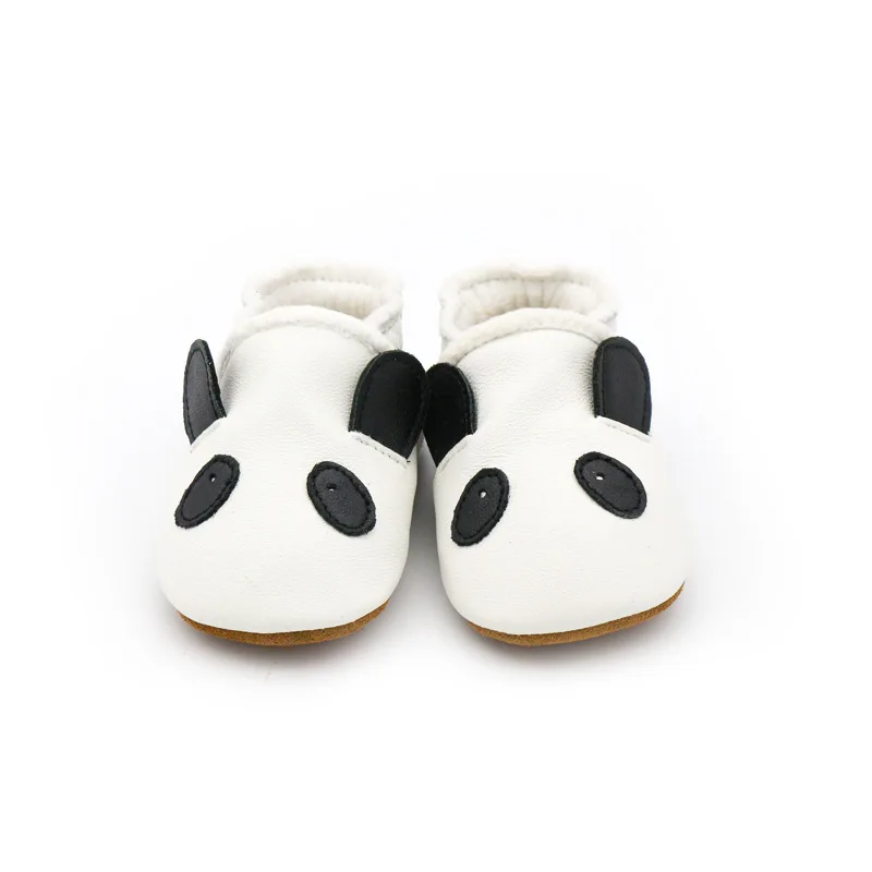 Chausson panda anti-dérapant en cuir pour bébé : style et confort réunis
