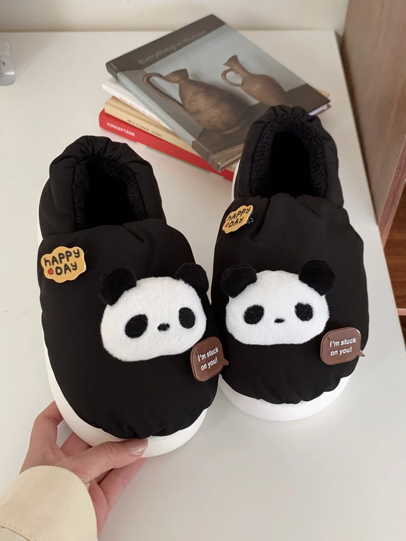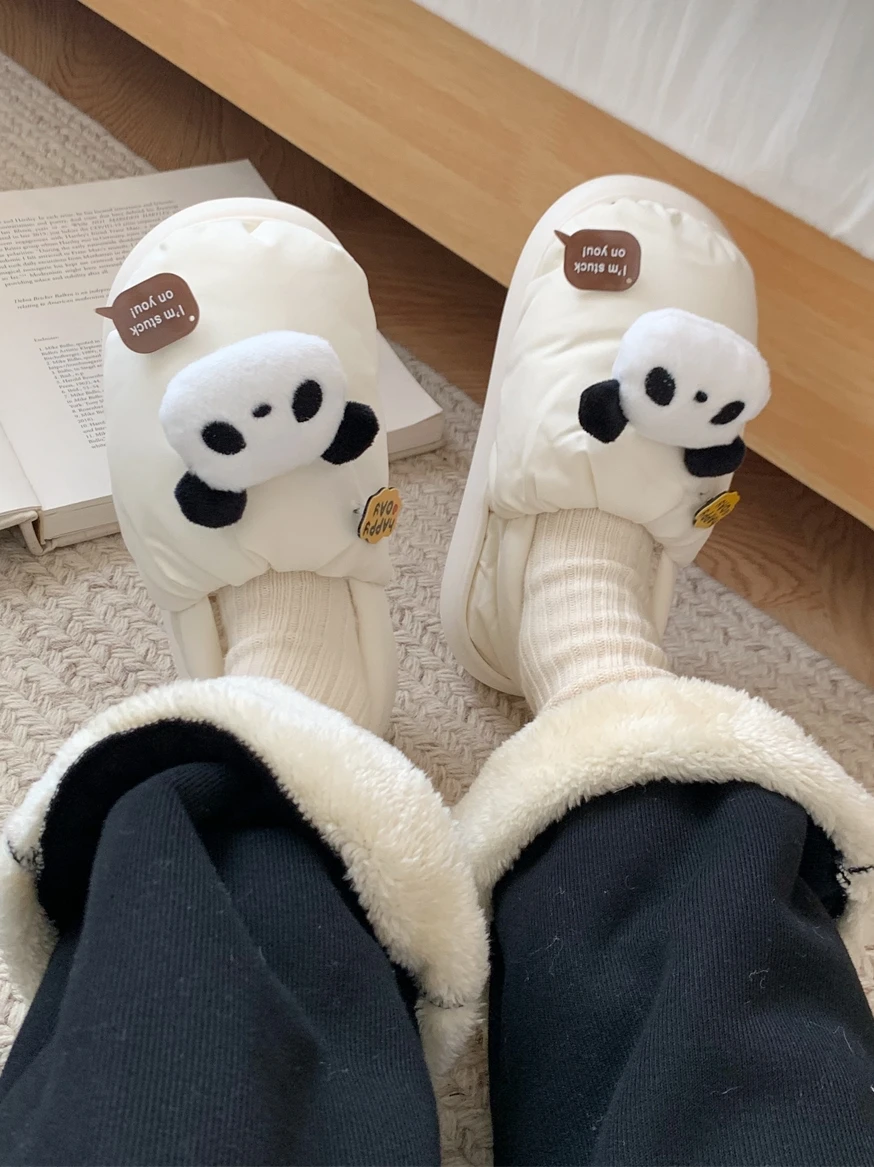 Chaussons rigolos homme style panda peluche blancs pour un confort unique et une touche ludique chez vous.