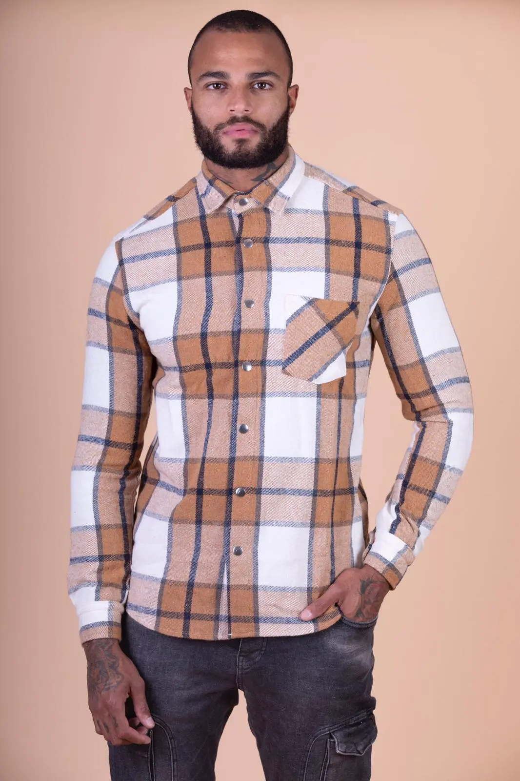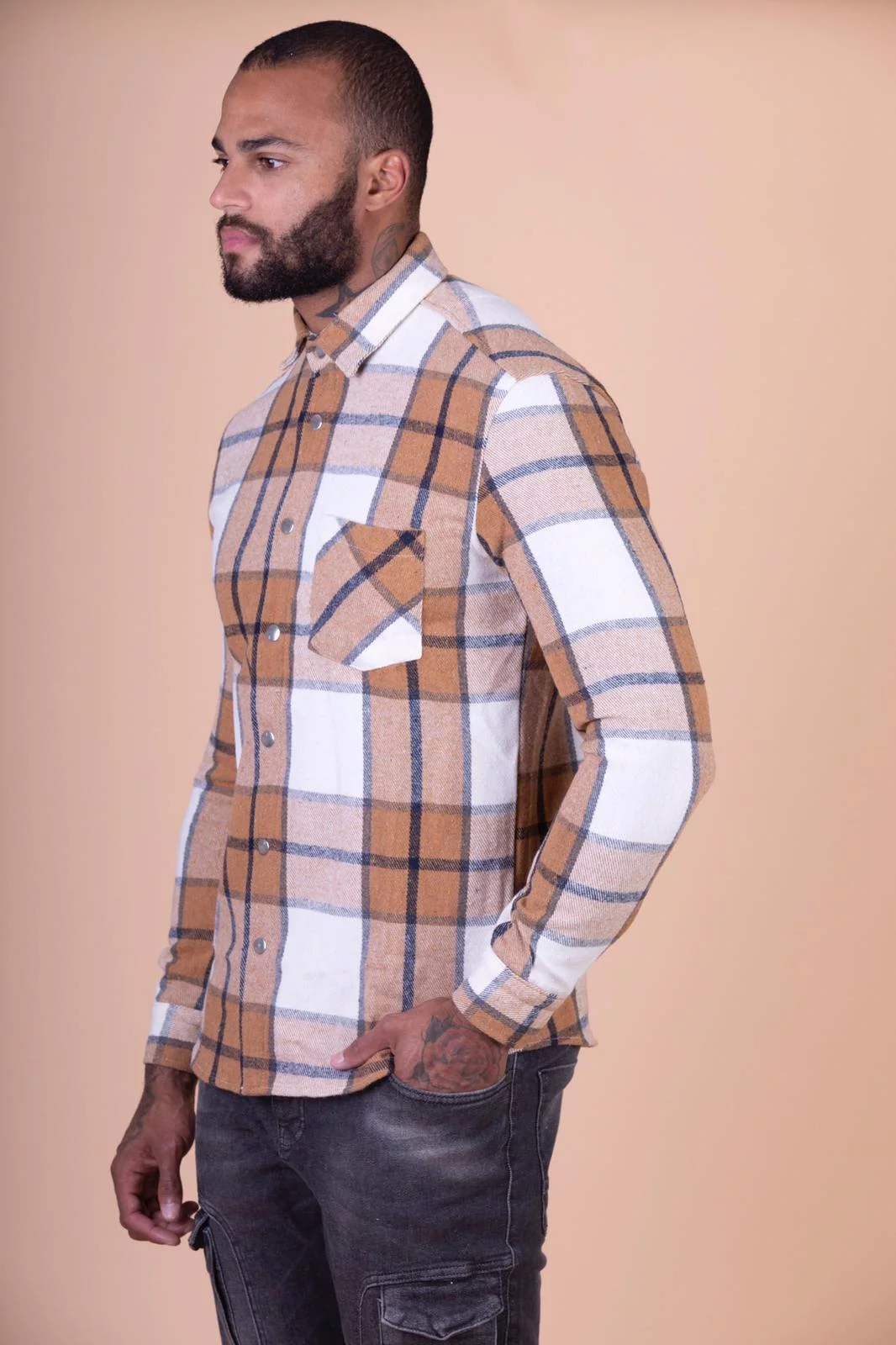 - Chemise à carreaux modèle lumber couleurs marron, bleu