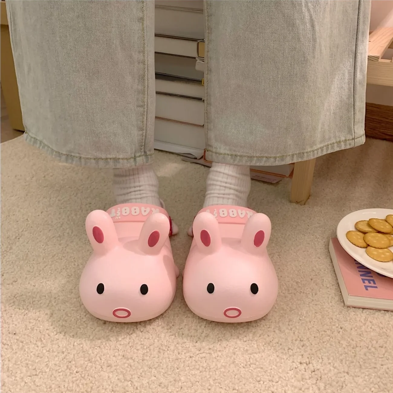 Marre des claquettes et des chaussons plan-plan ? On a déniché la dose parfaite de fun et de kawaii pour chiller à la maison : les claquettes lapin ! Ces adorables sandales kawaii en forme de lapin ne sont pas juste à croquer, elles sont aussi hyper confortables. Parfaites pour la maison, la plage ou flâner en ville, elles deviendront vite vos meilleures amies pour cocooner avec style.