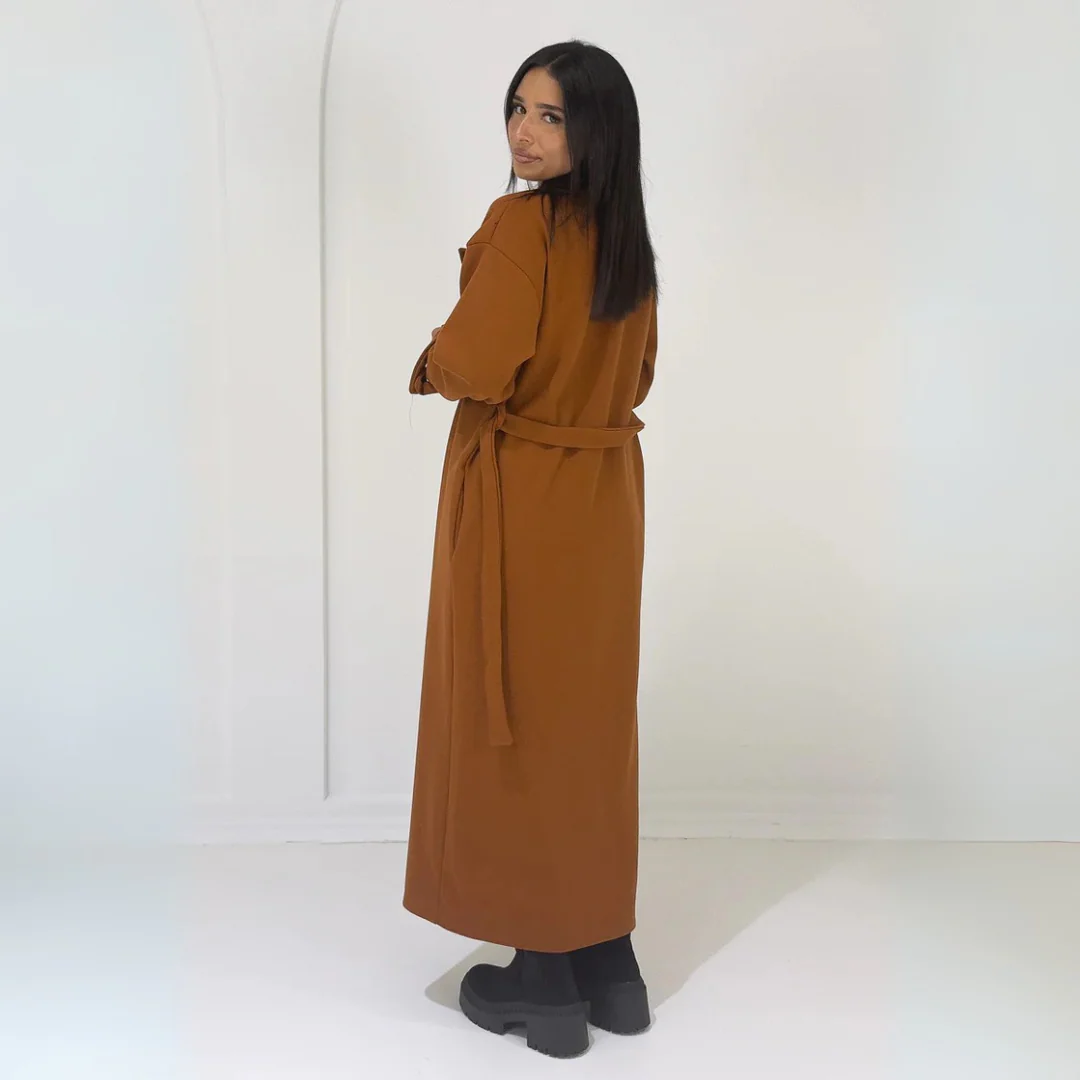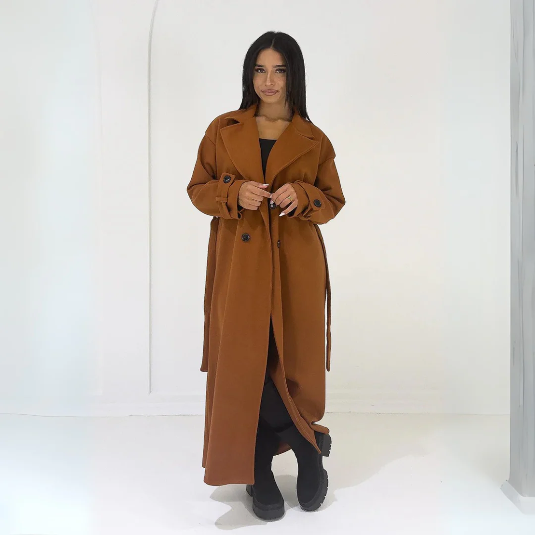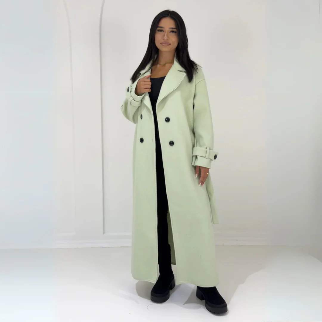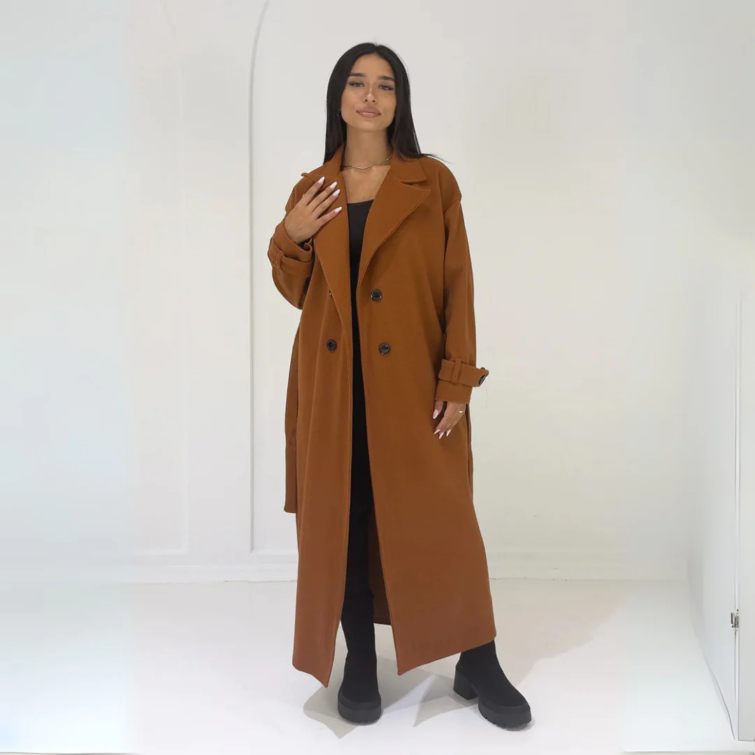 Ce long manteau séduit par son élégance épurée et ses lignes nettes. Sa coupe décontractée en fait un compagnon polyvalent pour le bureau, les loisirs ou les événements en soirée.