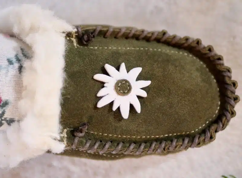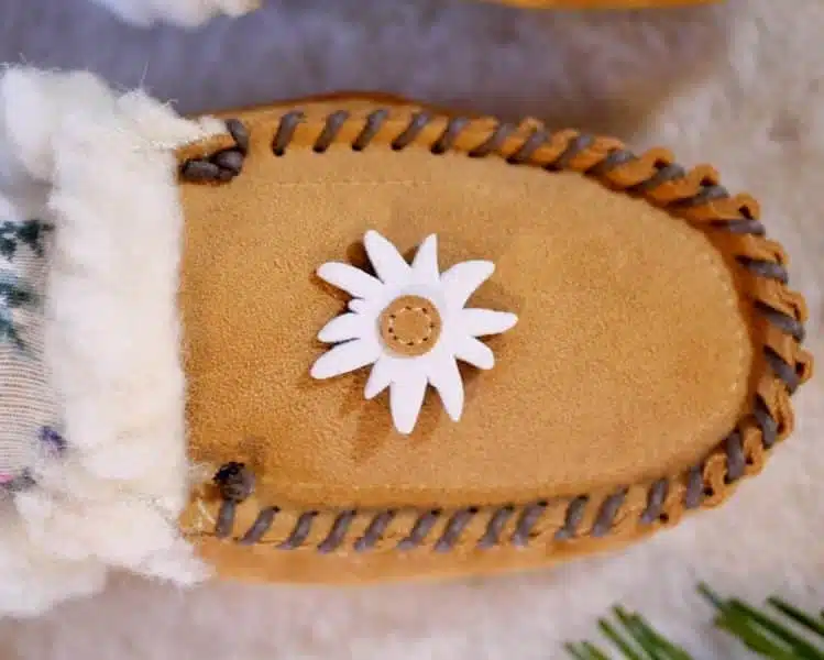 Ces mules style mocassin adultes mixtes, en cuir fourrées 100 % laine de mouton protègent vos pieds du froid tout en douceur. Elles sont revêtues d’un cuir vachette aspect velours à l’extérieur et de laine naturelle très dense à l’intérieur pour vous réchauffer efficacement. Elles existent en 14 pointures, se déclinent en 4 coloris, avec l’option fleur edelweiss. Elles sont entièrement confectionnées dans notre atelier. – MULES MOCASSIN ADULTES MIXTES EN CUIR FOURRÉES EN LAINE DE MOUTON –
