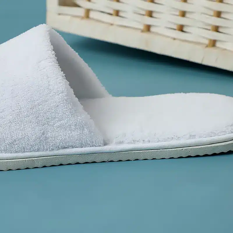 Fabriquées en coton blanc, ces pantoufles pour hôtel homme sont douces et agréables à porter.