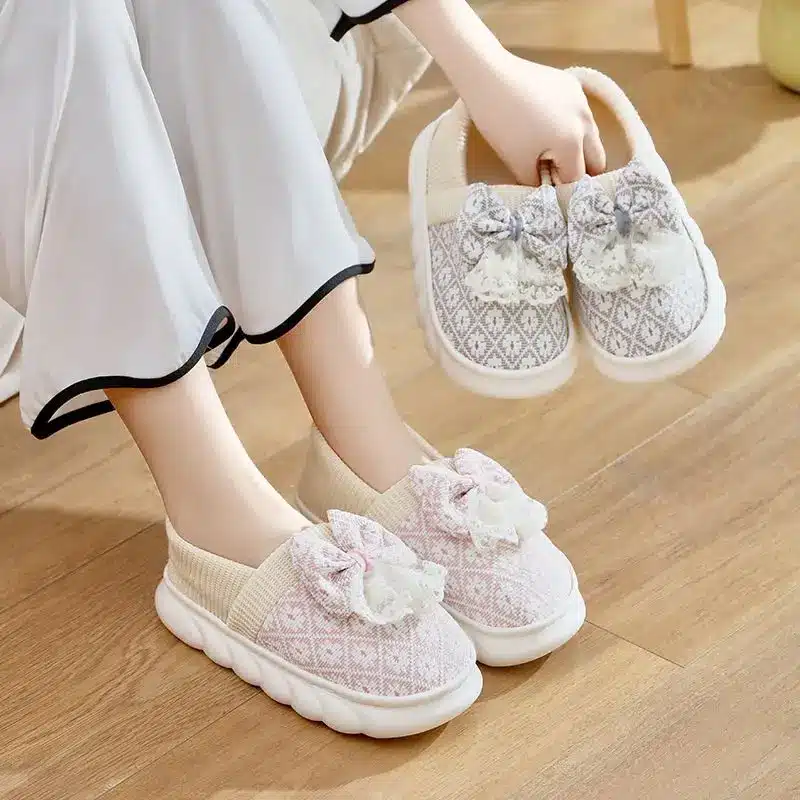 Ces pantoufles fermées avec nœud ont une semelle épaisse qui assure un amorti moelleux et une bonne stabilité quand vous marchez.