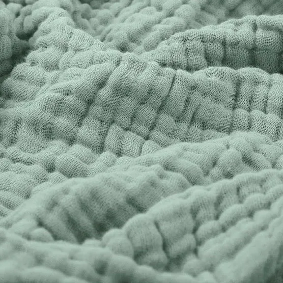 La mousseline de coton utilisée est douce au toucher et hypoallergénique. Elle convient parfaitement aux peaux sensibles et conserve sa souplesse même après plusieurs lavages. Facile à entretenir, elle sèche rapidement et garde son aspect d’origine sans se déformer.