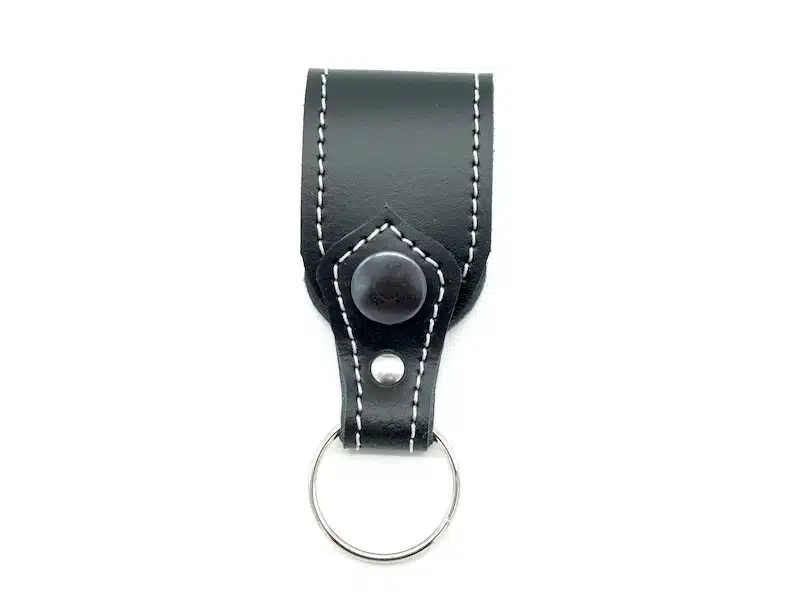 En tirant le bouton pression, l’astucieux porte-clé s’ouvre, permettant de l’enfiler sur votre ceinture (largeur maximale : 4 cm).