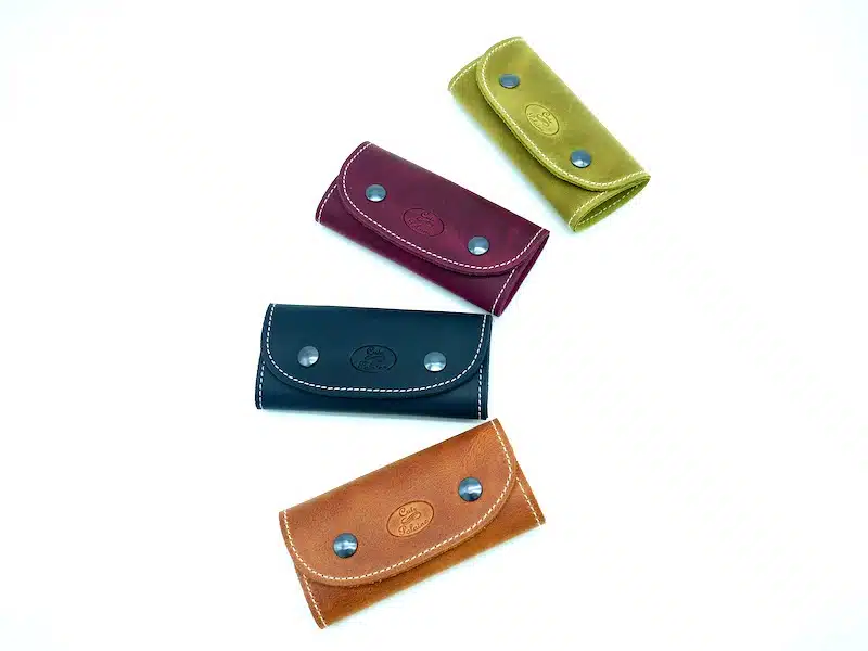 Porte-clés mousqueton 4 crochets mixtes en cuir vachette lisse, fermeture pression déclinaisons par Cuir Polaine, Artisan Maroquinier, Artisan de France