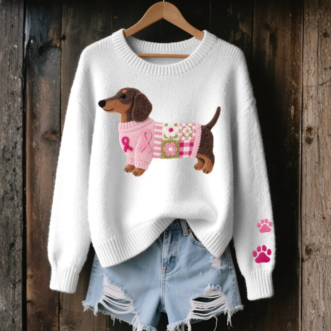 Ce pull en tricot se distingue par son design original mettant en avant un adorable motif de teckel en feutre de laine. Il allie confort et élégance, tout en offrant une touche ludique à vos tenues. Parfait pour les journées fraîches, il apporte une sensation de chaleur agréable sans compromis sur le style.