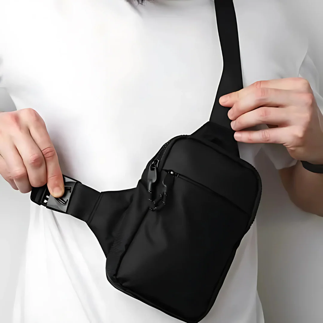 Conçu pour vous accompagner partout, ce sac bandoulière antivol allie praticité et style. Grâce à sa coupe ergonomique, il épouse parfaitement le torse sans gêner les mouvements, tout en gardant vos essentiels à portée de main.