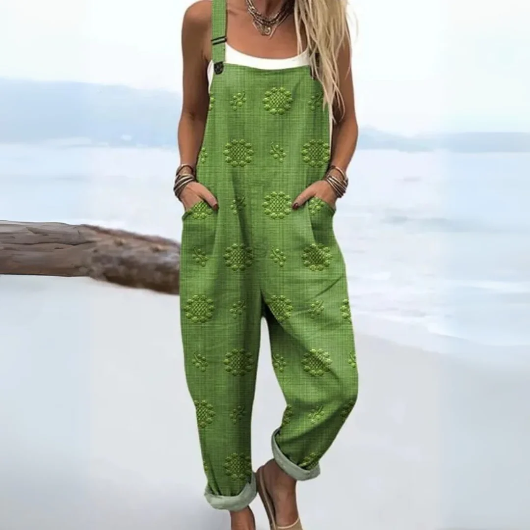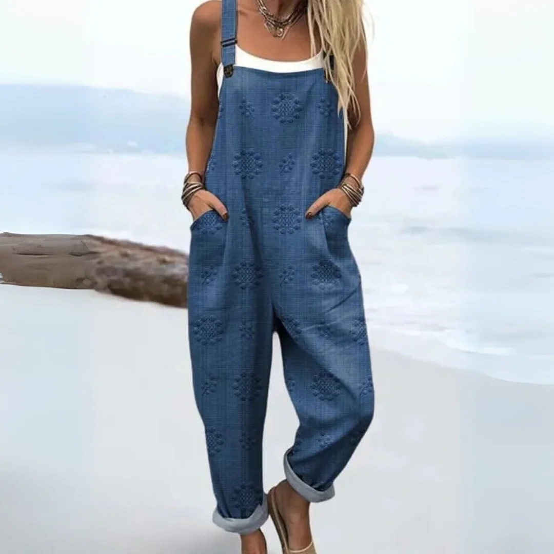 Cette salopette légère apporte une touche bohème à votre style. Sa coupe fluide et sa matière respirante offrent un confort idéal pour la belle saison. Les motifs fleuris subtilement intégrés créent un rendu original et tendance, parfait pour les balades en ville ou les moments de détente.