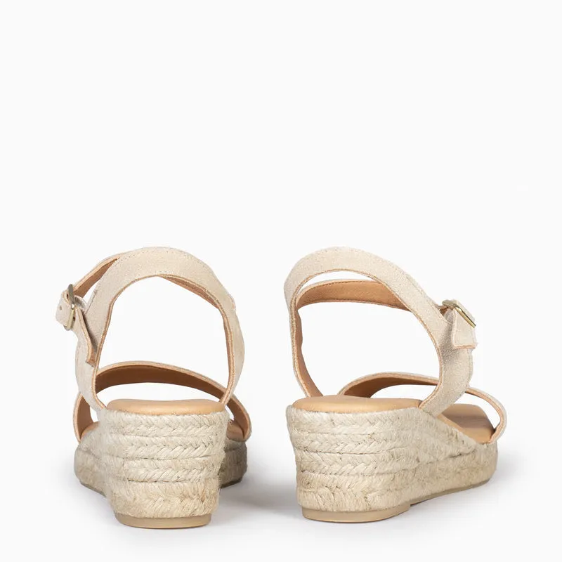 Grâce à leur semelle en corde tressée et leur talon bien proportionné, ces sandales assurent une démarche stable sans fatiguer le pied. La bride à boucle réglable soutient la cheville tout en apportant une touche raffinée. Le confort de marche reste optimal même après plusieurs heures.