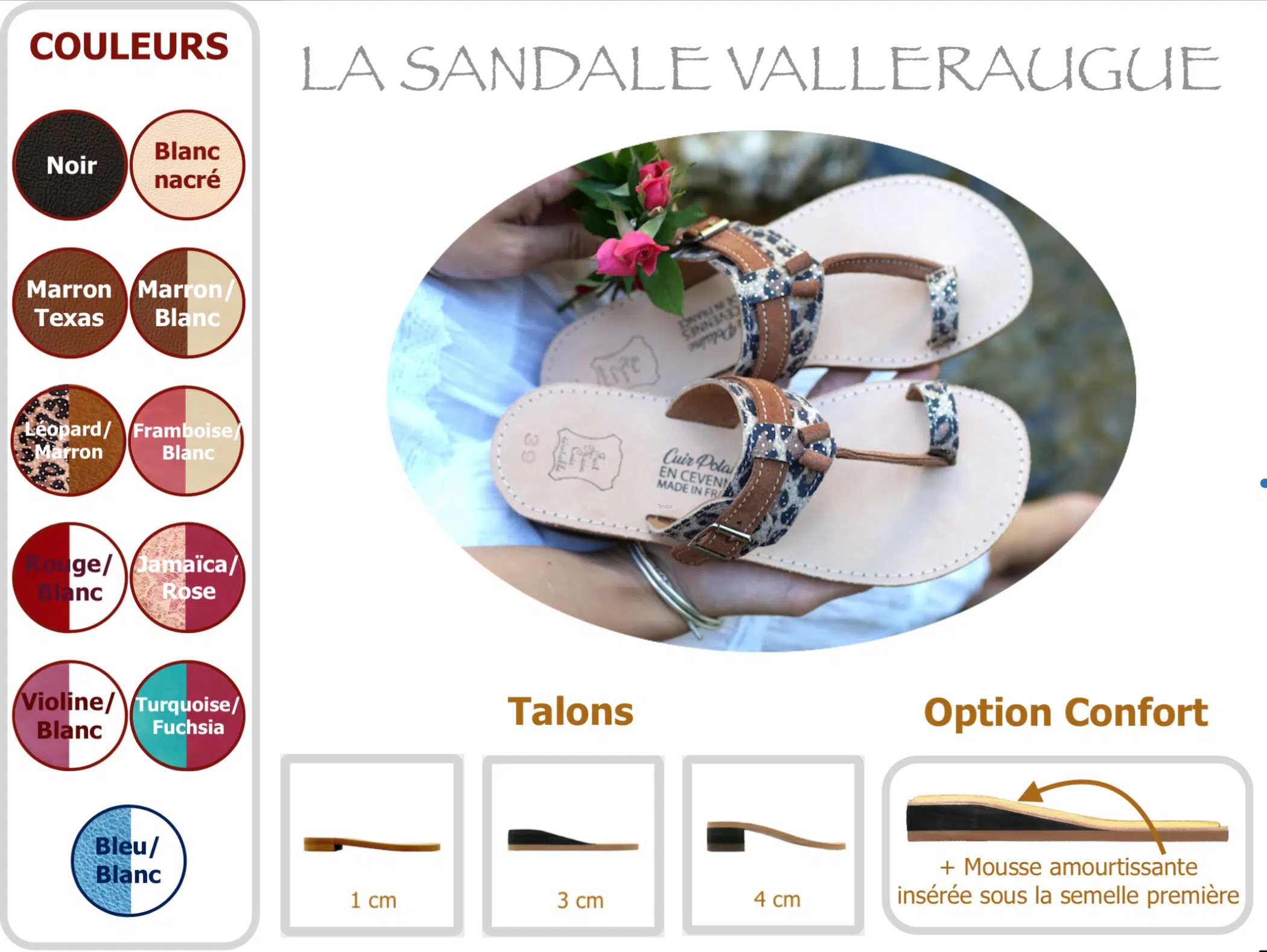 Choix du modèle de talon : plat 1 cm, compensé 3 cm, haut 4 cm