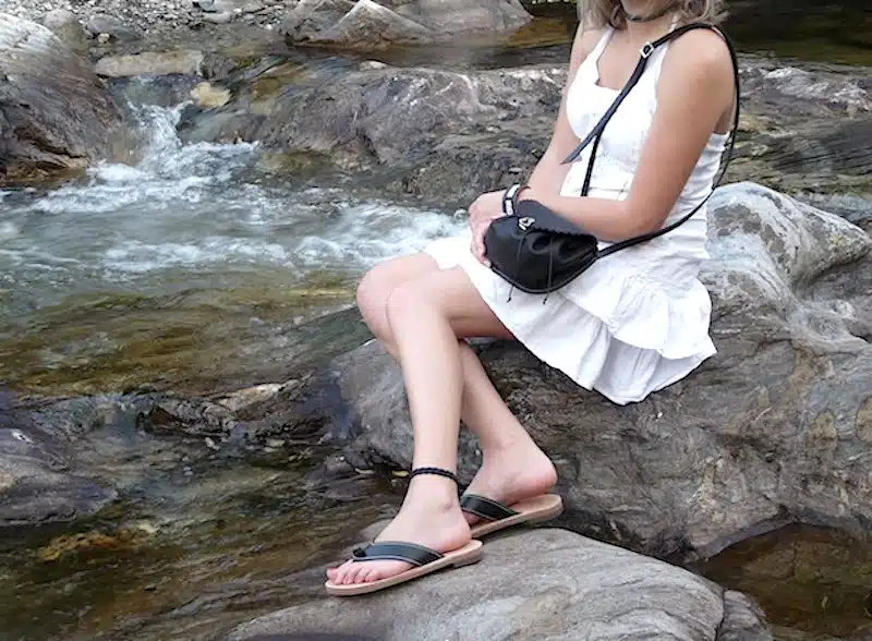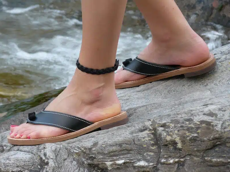 La bride centrale s’insère naturellement entre le pouce et le deuxième orteil. Hop ! C’est fait ! Vos pieds sont chaussés pour l’été, ils respirent, s’aèrent… en toute liberté.