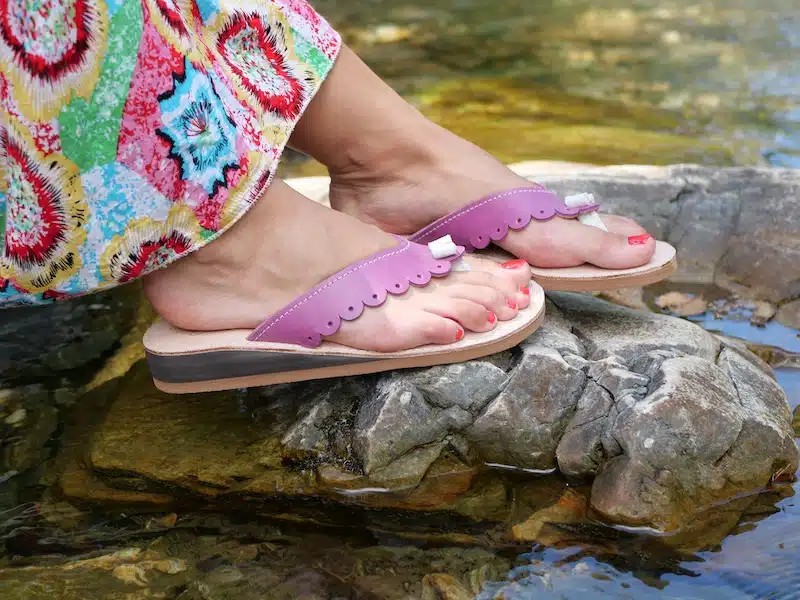 La bride centrale s’insère naturellement entre le pouce et le deuxième orteil. Hop ! C’est fait ! Vos pieds sont chaussés pour l’été, ils respirent, s’aèrent… en toute liberté.